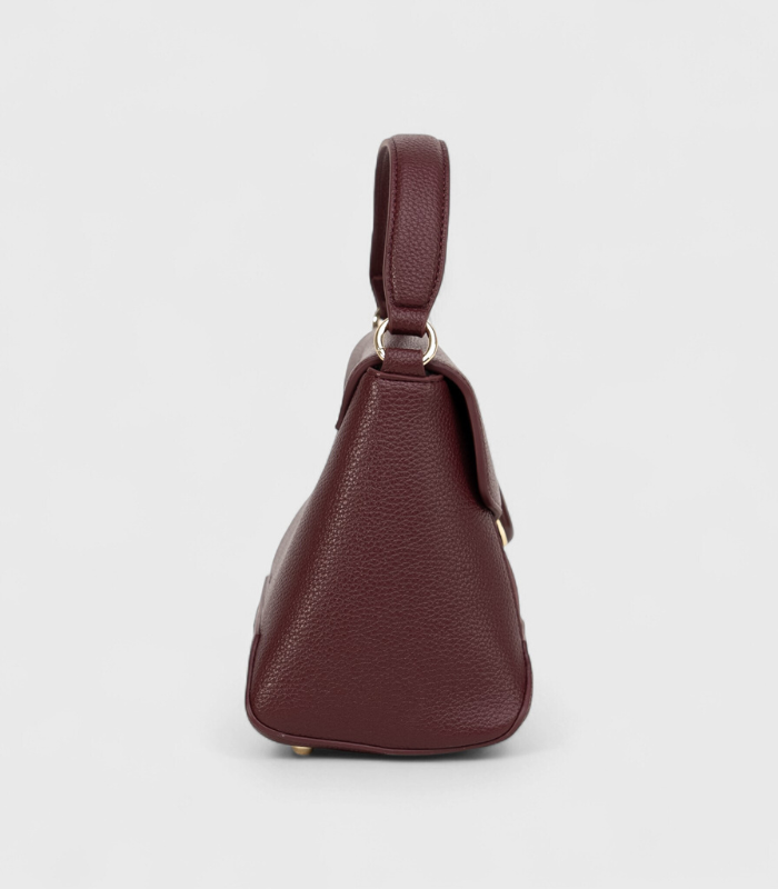 Elegantna torba u tamnocrvenoj nijansi izrađena od visokokvalitetne teksturirane eko kože. Klasičan, ali moderan dizajn s preklopom i zlatnim kopčanjem daje joj sofisticiran izgled. Idealna je za svakodnevne i poslovne kombinacije, pružajući savršenu ravnotežu između stila i praktičnosti.