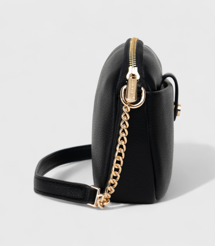 Ova izuzetna crossbody torbica definisana je klasičnom crnom bojom i idealna je za savremeni, urbani stil. Elegantni zlatni detalji, poput lanca i kopče, daju sofisticiran kontrast kompaktnoj formi napravljenoj od kvalitetne ekološke kože. Svojom svestranošću, ova crna torbica je neizostavan modni komad koji lako prelazi iz dnevnih u večernje prilike, nudeći stil i funkcionalnost.