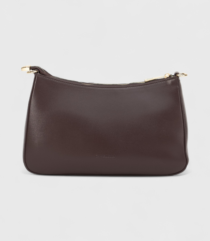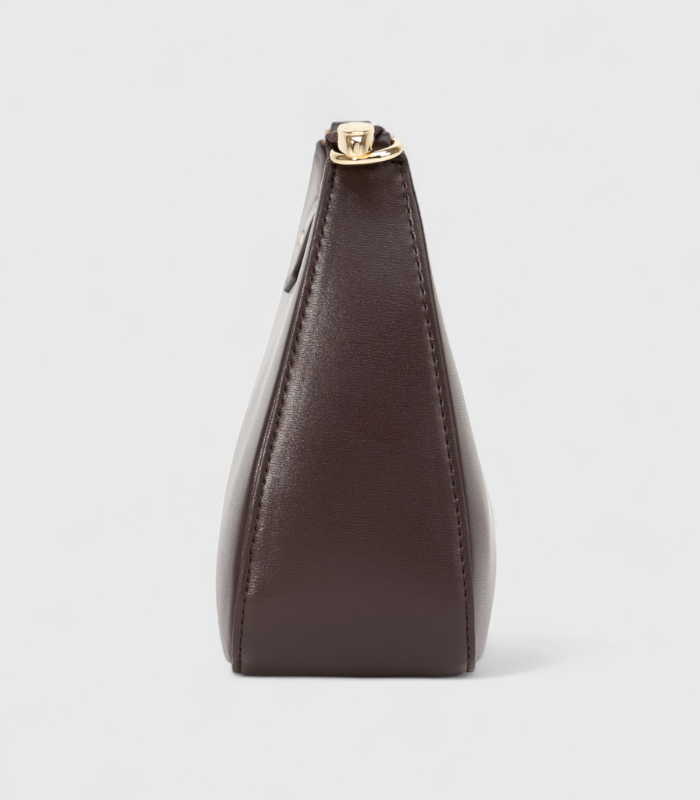 Bogata, čokoladno smeđa nijansa donosi sofisticirani karakter ovom ultra-modernom, baguette modelu. Njen besprijekoran i minimalistički pravougaoni dizajn čini je esencijalnim dodatkom za kreiranje skupocjenog izgleda, nezavisno o povodu. Elegantni zlatni metalni okovi na patentu služe kao diskretan, ali upečatljiv detalj koji naglašava visoku kvalitetu izrade. Iskoristite podesivi kaiš za nošenje preko tijela ili je nosite ispod ramena.