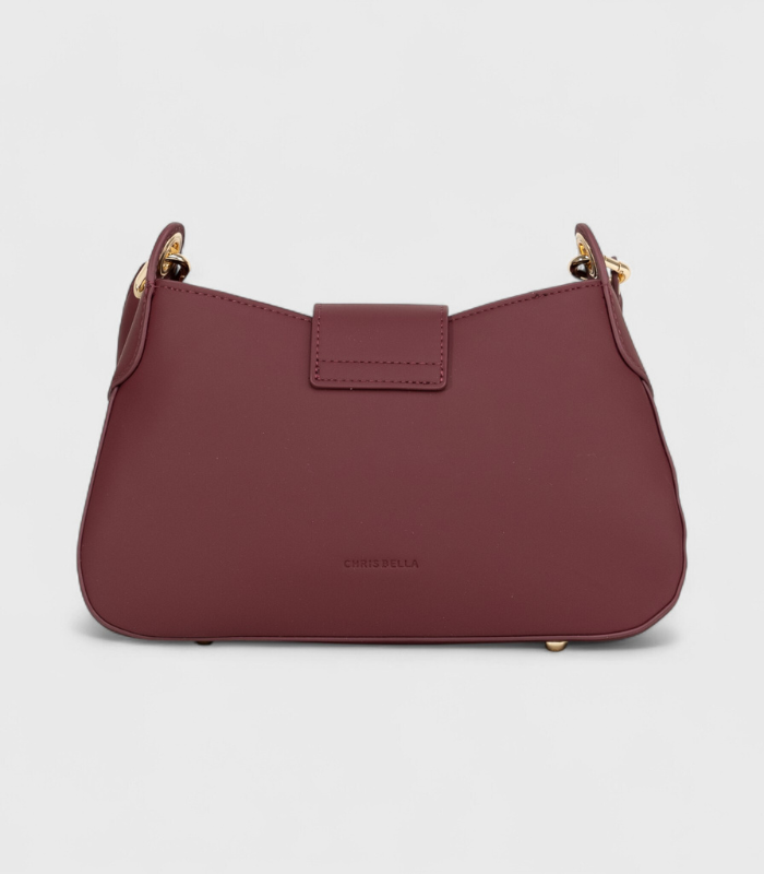 Torbica baguette stila u luksuznoj bordo (burgundy) boji je statement komad koji privlači pažnju. Njen elegantni preklop ukrašen je atraktivnom zlatnom metalnom kopčom ovalnog oblika, koja joj daje dašak glamura. Ova duboka, intenzivna boja u kombinaciji sa kratkim kaišem čini je idealnom za nošenje preko ramena, podižući svaku kombinaciju na viši nivo.