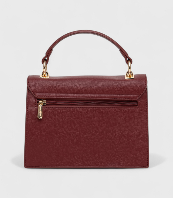 Elegantna bordo nijansa, uparena s modernim sivim akcentom na preklopu, stvara vizualni kontrast pun karaktera i stila. Ova besprijekorno izrađena torba odlikuje se oblikom i oštrim linijama, idealnim za poslovni look. Teksturirani materijal garantira dugotrajnost, dok geometrijski preklop dodaje notu dinamičnosti. S zlatnom kopčom kao diskretnim ukrasom, ova torba je sofisticirani modni izbor koji ćete rado nositi iz dana u dan.