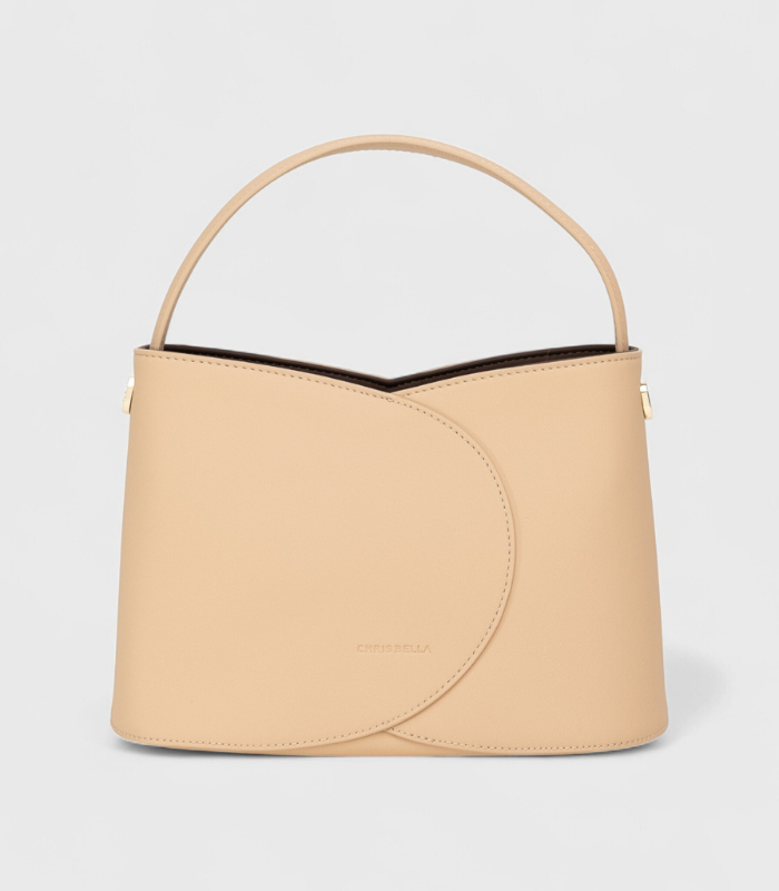 Ova trendi torba plijeni pažnju svojom nježnom bež nijansom, koja zrači sofisticiranošću i pruža maksimalnu fleksibilnost u kombiniranju. Njezin inovativni dizajn s čvrstim linijama čini je idealnim dodatkom, dok unutrašnjost nudi iznenađujuću funkcionalnost. Prepoznatljivi zlatni Chrisbella logotip diskretno je pozicioniran, naglašavajući kvalitetu brenda.