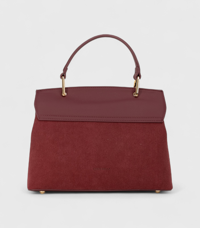 Ova prostrana, strukturirana torba s ručkom dolazi u bogatoj bordo nijansi, idealnoj za sofisticirani dnevni i poslovni look. Njezin šarm leži u luksuznom kontrastu glatkog preklopa i mekane brušene kože na tijelu torbe. Upečatljiva zlatna kopča na preklopu dominira dizajnom i služi kao vrhunski akcent, dok čvrsta ručka osigurava udobno nošenje.